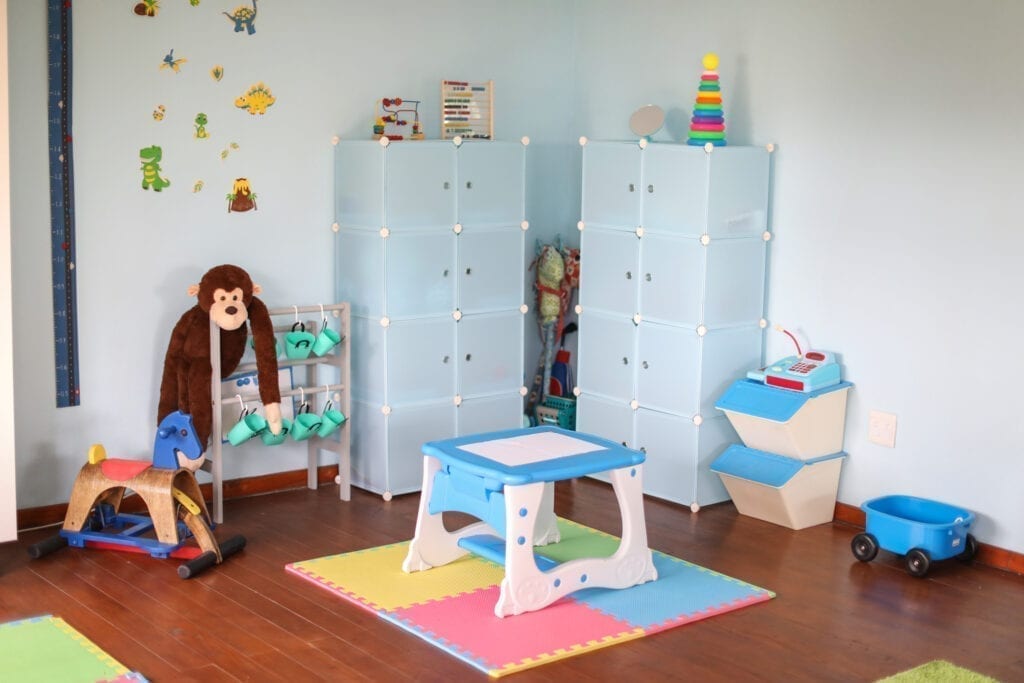 • Expand upon what you already have: In many homes, you already have the ‘bones’ for a good playroom.  Consider using the main walls of your living room or dining room that have plenty of space for kids to be imaginative with.  Wide-open walls can be used for bulletin boards, lining up easels for art projects, or can be painted with chalkboard paint for the ultimate in non-stop creativity for your kids. If you are handy with do it yourself projects, consider building built-ins for desks for adults and children to utilize while other family members are using the wall chalkboard.