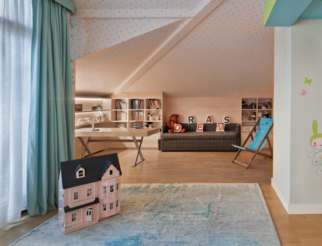 • Share the space, but still make it fun: If you live in a small home or an apartment, find ways to share the space with your little ones, but still, make it fun. Opt for neutral tones and use organizational decor to add color, and creative inspiration. Colorful rugs, accessories, and wall decor can make your child feel like they aren’t giving up being a kid! If your main area has to be used for adult entertainment at a later time, opt for family-friendly furniture slipcovers, and transitional color palettes that will make your home still feel sophisticated. A neutral palette of chocolate browns mixed with blues and greens can feel grown-up or kid-like, depending on what decorative accents you have in the room.