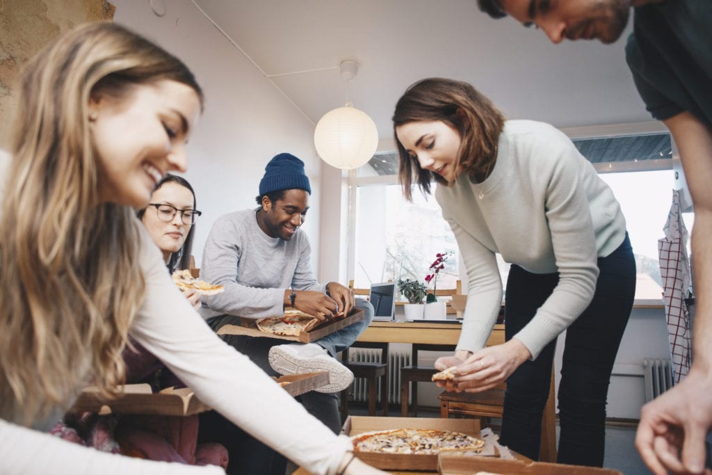 Friends hanging out in a dorm room